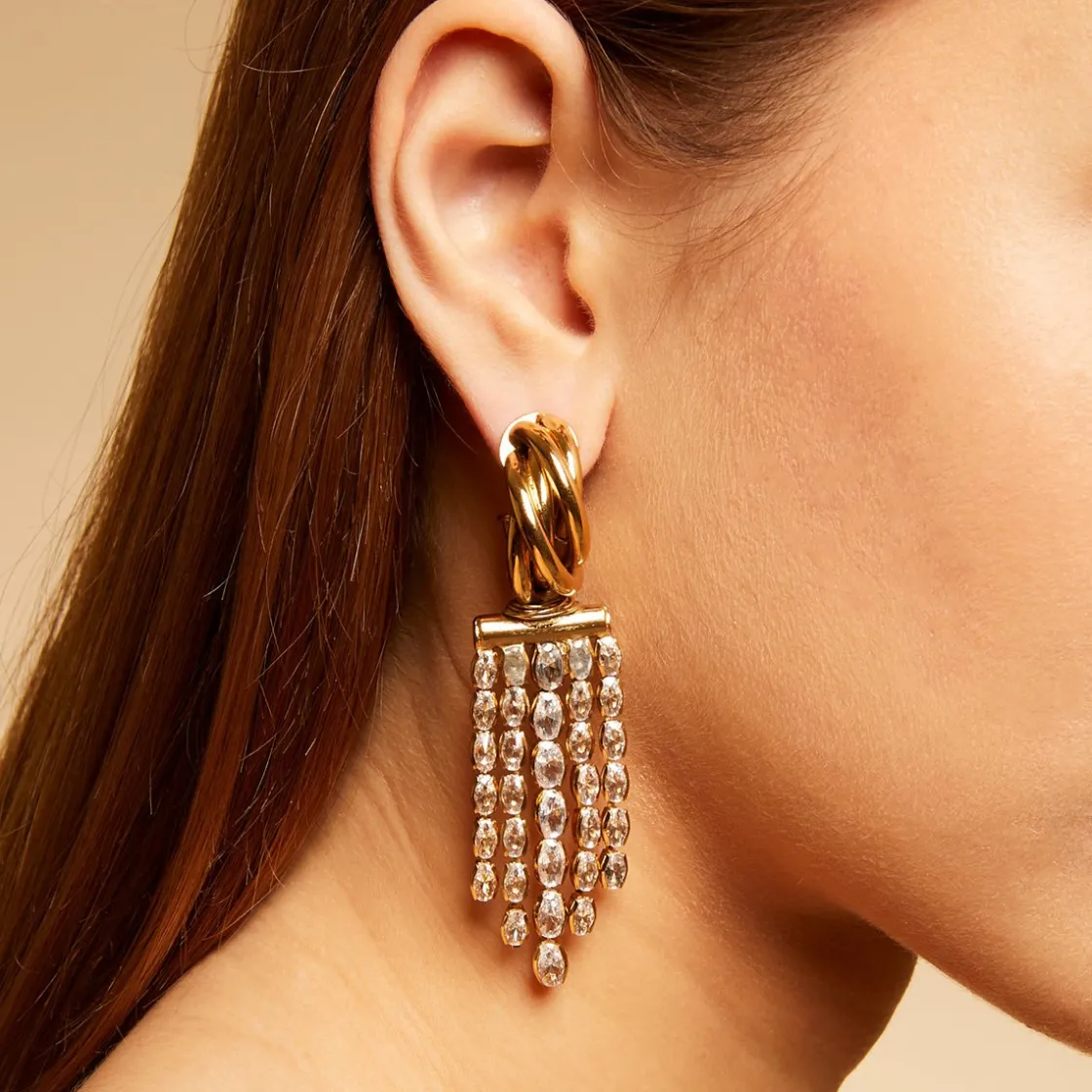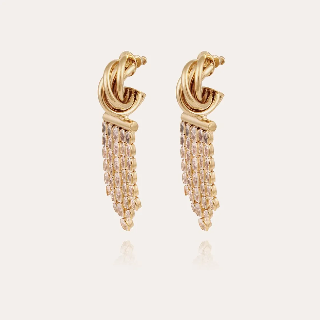 Gold plated earrings consisting of 6 rings superimposed and intertwined giving shape to a creole and embellished with zirconias.