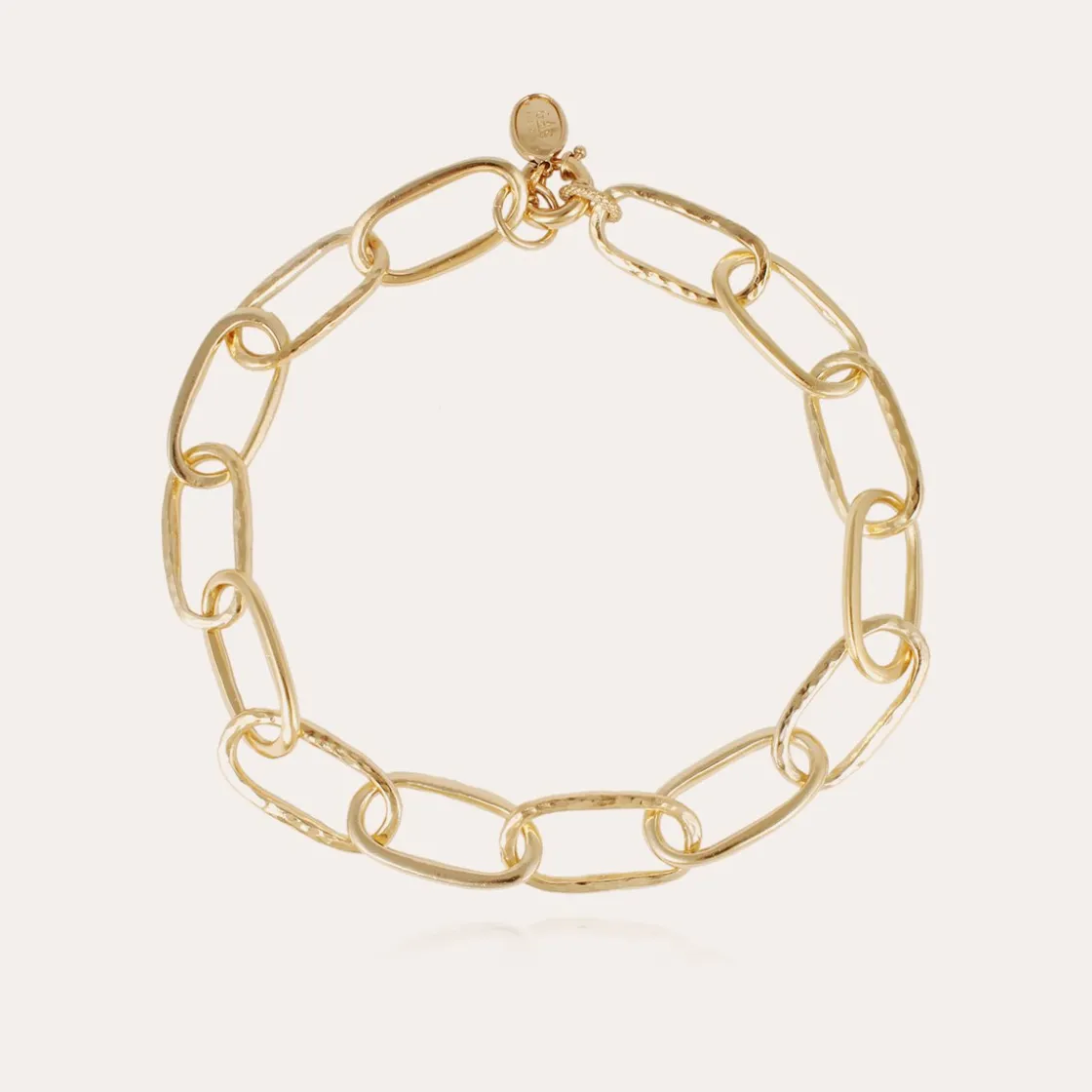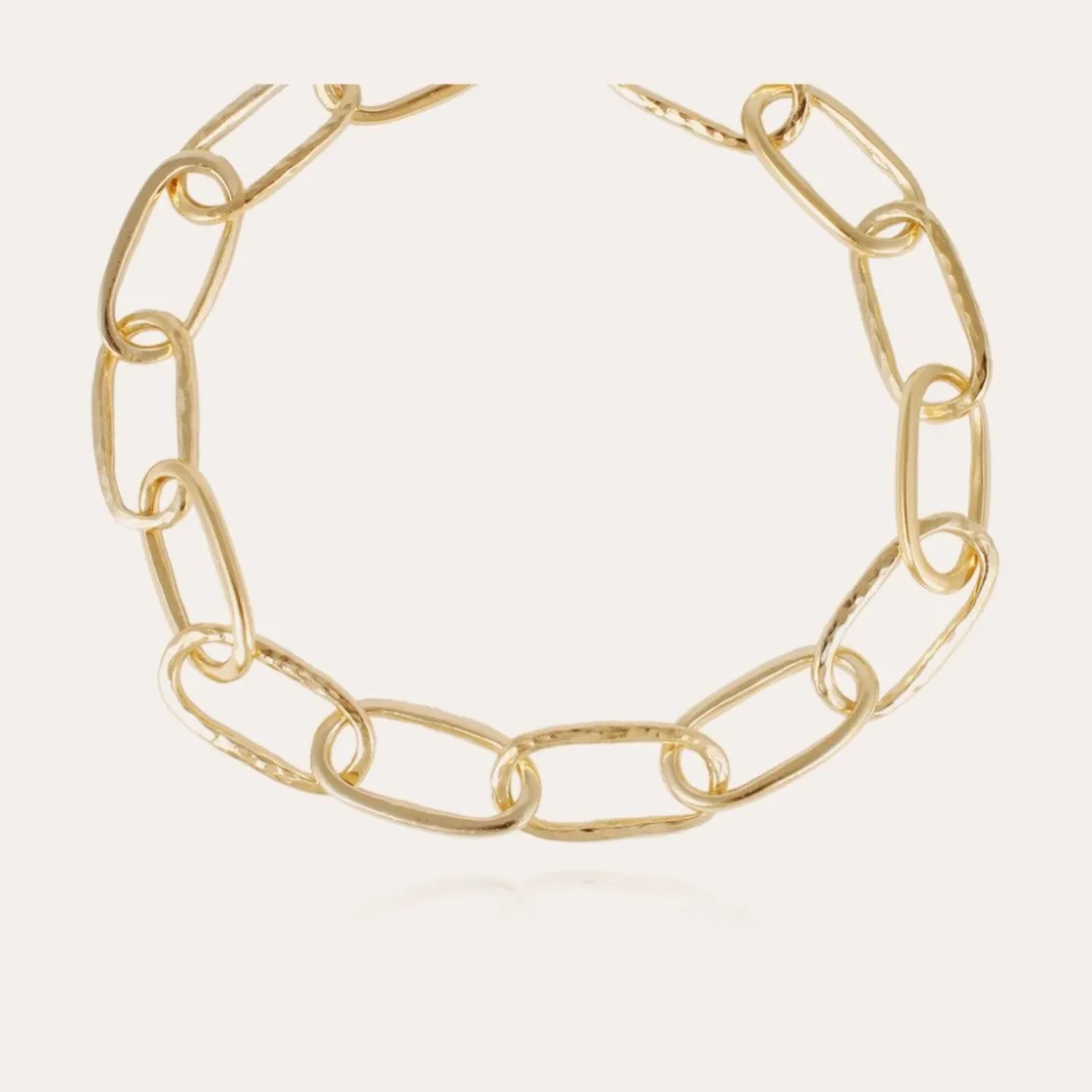 Collier doré à l’or fin composé d’une chaîne à larges maillons ovales. Taille ajustable.