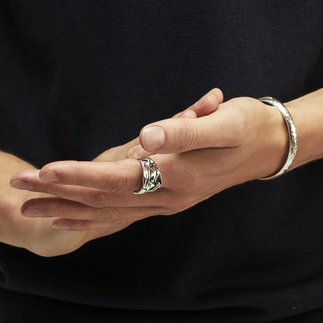 Silver plated ring with compressed effect.