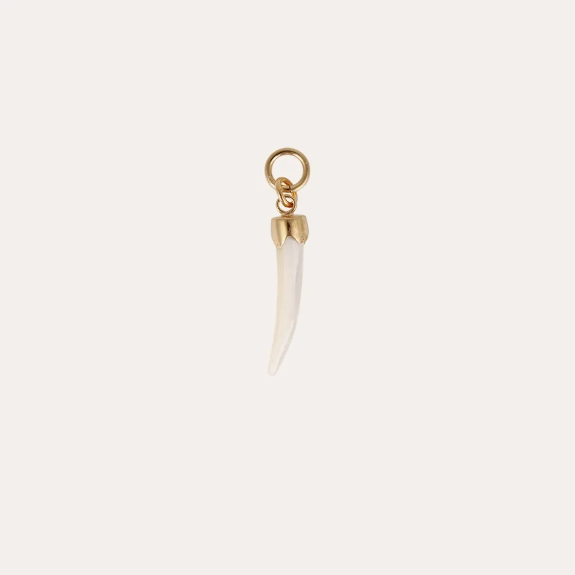 Discover this luminous horn-shaped pendant made of mother-of-pearl gold plated. A real lucky charm to wear in the crook of your neck!