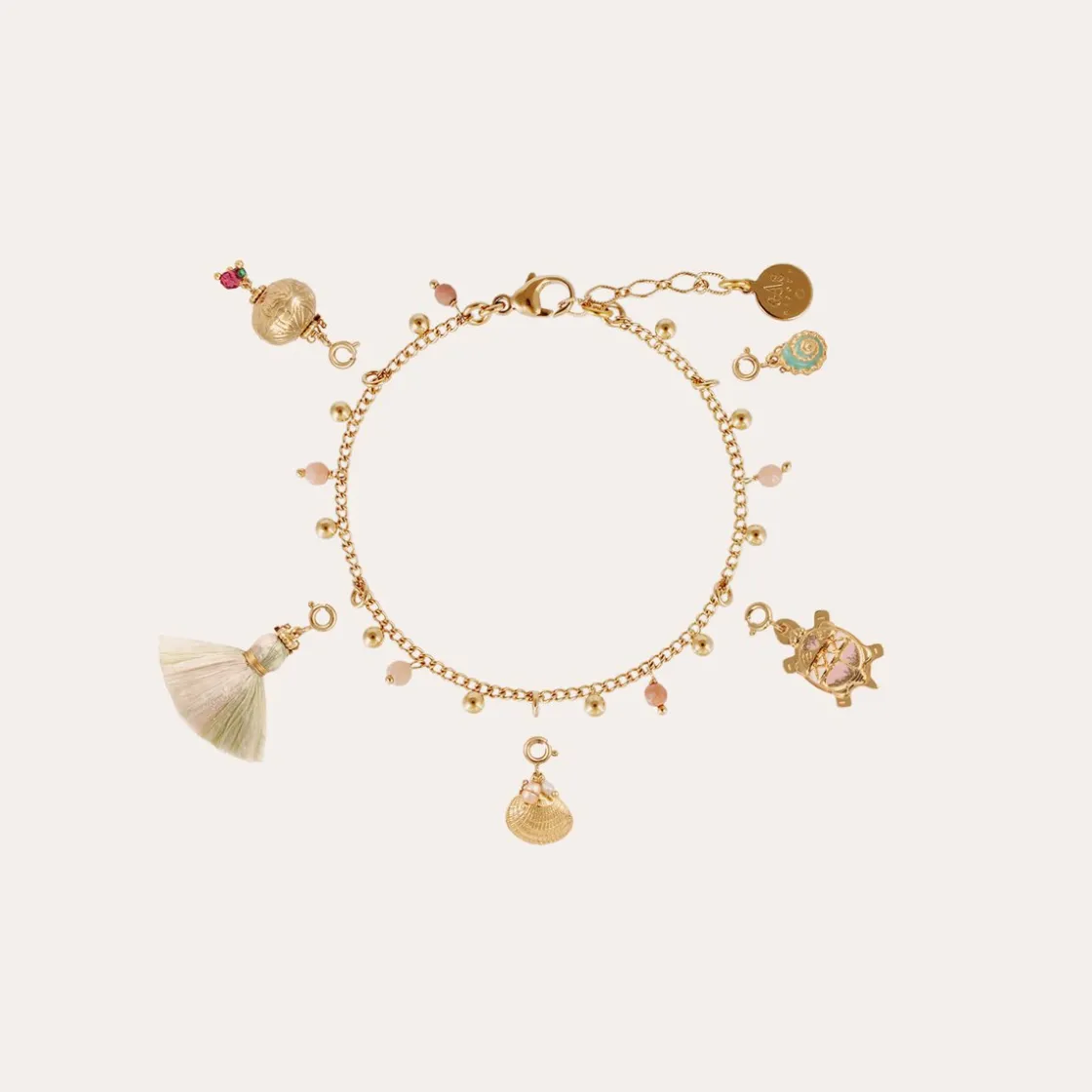 Gold plated chain Lucce for bracelet adorned with colored beads. Adjustable length.