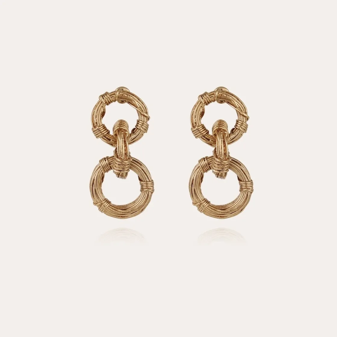 Fine gold-plated Ariane earrings, composed of a mesh of three rings formed from an elegant assembly of metal wires.