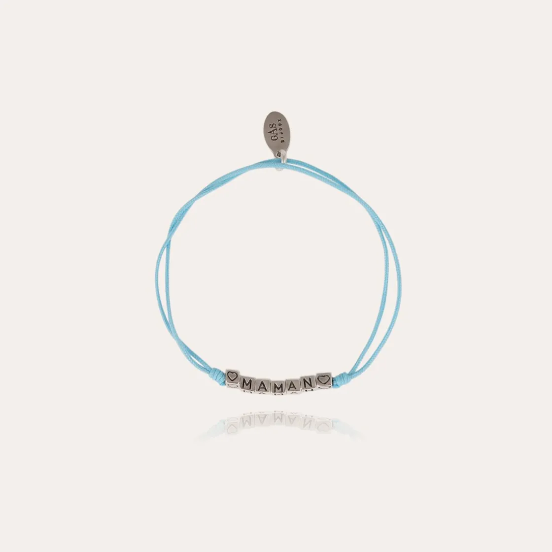 Lucky-charm bracelet composed of silver plated cubes, engraved with letters forming the word « MAMAN ». Adjustable size.