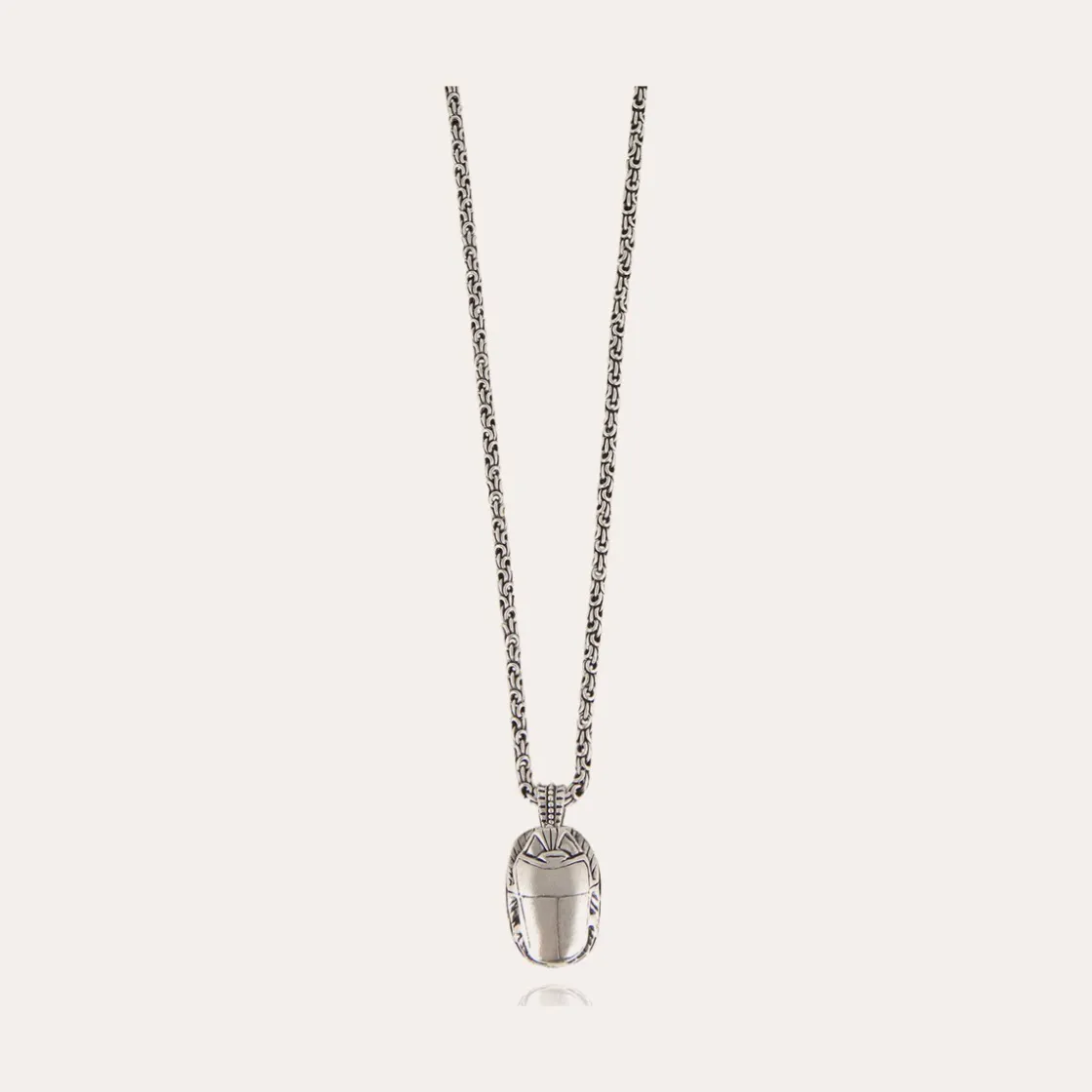 It’s the oldest lucky charm in the world that Gas Bijoux has chosen as the symbol of its bestiary. Silver plated necklace composed of a chain adorned with a beetle that has been delicately hand-engraved and hand-hammered. Adjustable size.