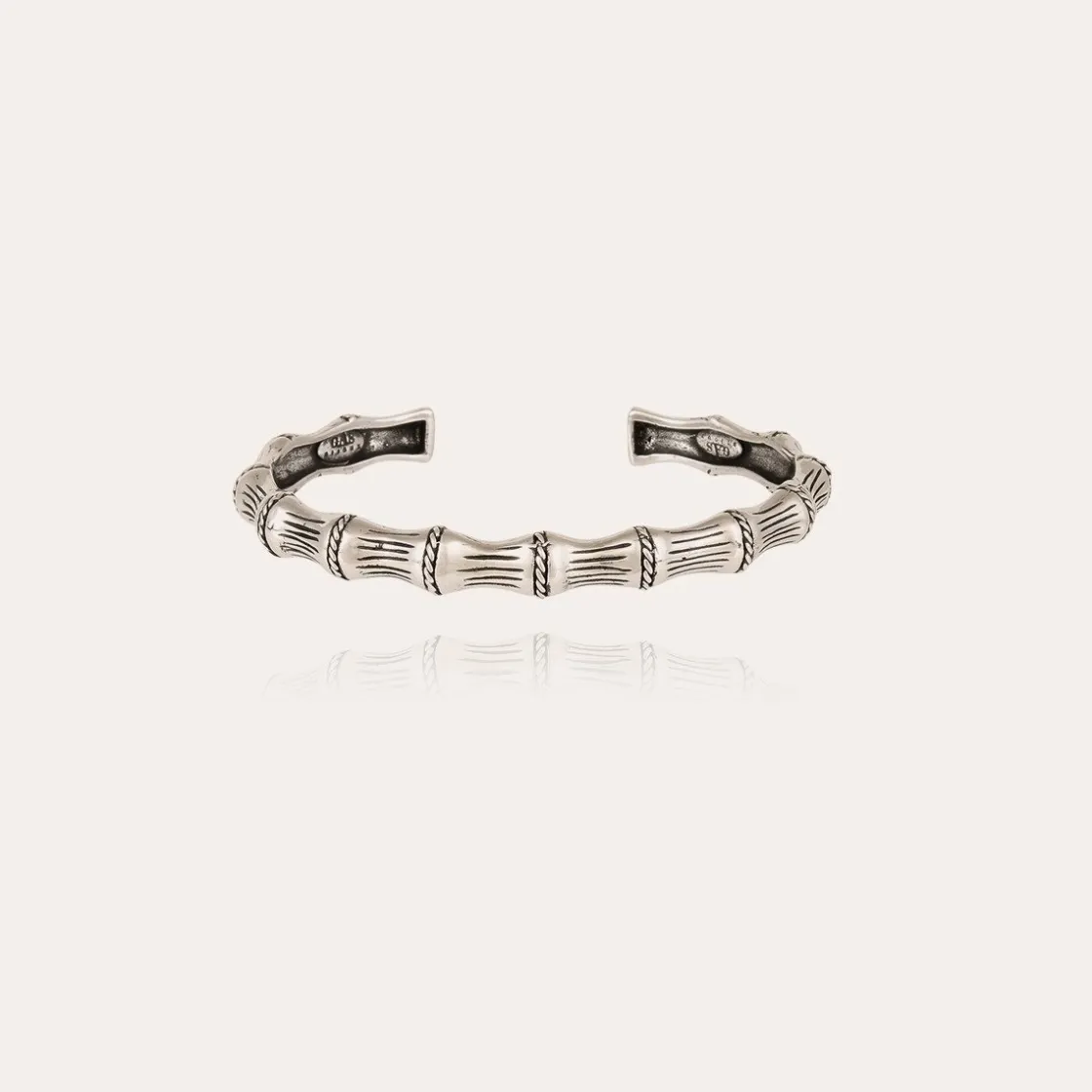 A fine silver-plated rush bracelet, striated and adorned delicate twisted bows.